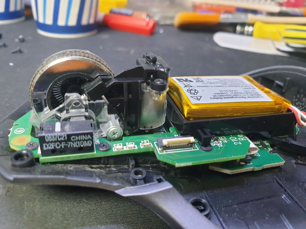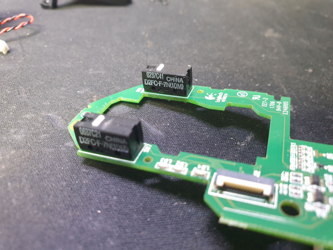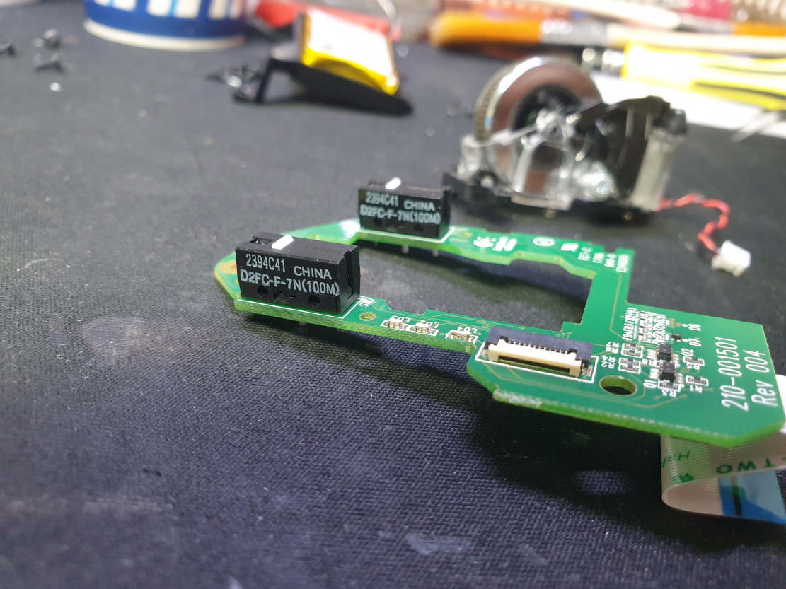 마우스포인터가 움직이지않는 문제로 수리 진행합니다. 추가로 새 스위치 D2FC-F-7N(100M) 좌우교체 수리 진행합니다.