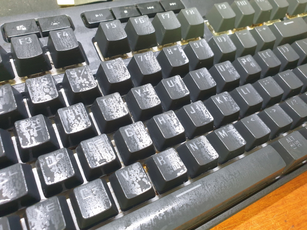 기계적으로 눌리지만 컴퓨터에선 눌리는 반응이 있는듯 없는듯하며 아예 안눌리거나 여러번 눌리는 증상은