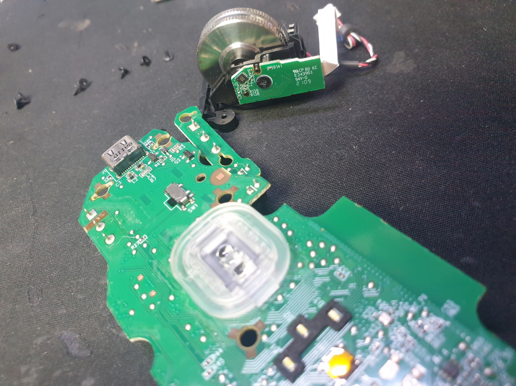 휠센서불량으로 휠센서교체수리 진행합니다. 휠센서불량은 휠팅김, 스크롤시 위아래로 잘 안움직이거나 아예 반응이 없는 경우 발생되는 현상이며 센서교체후 정상적인 사용이 가능합니다.