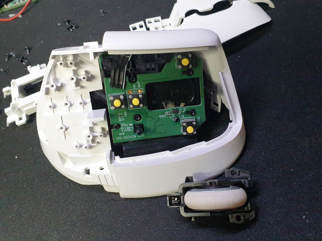 휠센서불량으로 휠센서교체수리 진행합니다. 휠센서불량은 휠팅김, 스크롤시 위아래로 잘 안움직이거나 아예 반응이 없는 경우 발생되는 현상이며 센서교체후 정상적인 사용이 가능합니다.