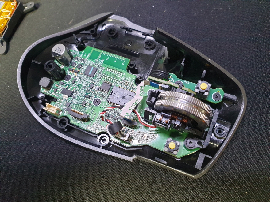 휠센서불량으로 휠센서교체수리 진행합니다. 휠센서불량은 휠팅김, 스크롤시 위아래로 잘 안움직이거나 아예 반응이 없는 경우 발생되는 현상이며 센서교체후 정상적인 사용이 가능합니다.