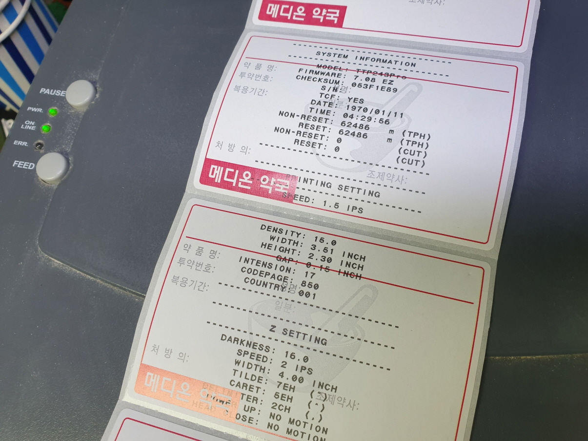 인쇄후 인쇄물이 흐리게 나오거나 일부 줄이가는듯이 인쇄되거나 바코드출력후 바코드인식이 안되거나 반만 인쇄되는 문제는 대부분 인쇄헤드 불량으로 헤드교체후 정상적인 사용이 가능합니다.