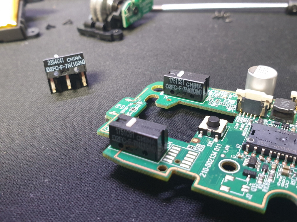 버튼내 스위치불량으로 새 스위치 D2FC-F-7N(100M) 좌우교체 수리 진행합니다.