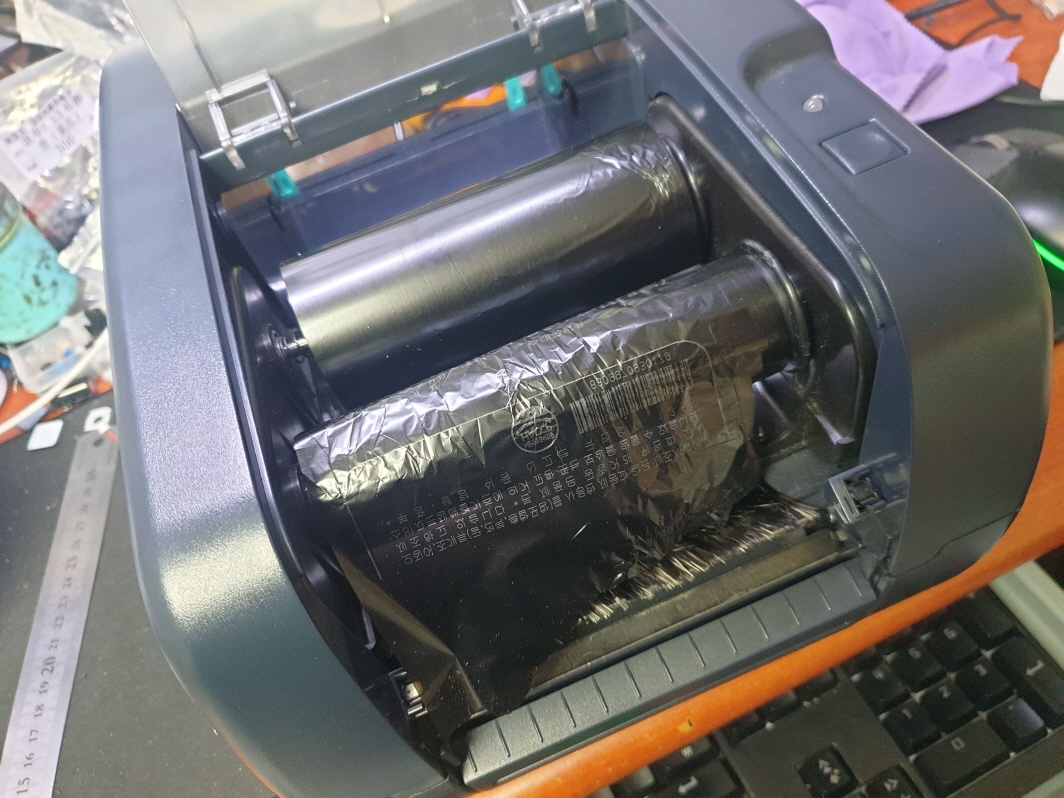 정상적으로 인쇄는 되지만 리본(먹지)가 흘러내리는 문제로 수리 진행합니다.