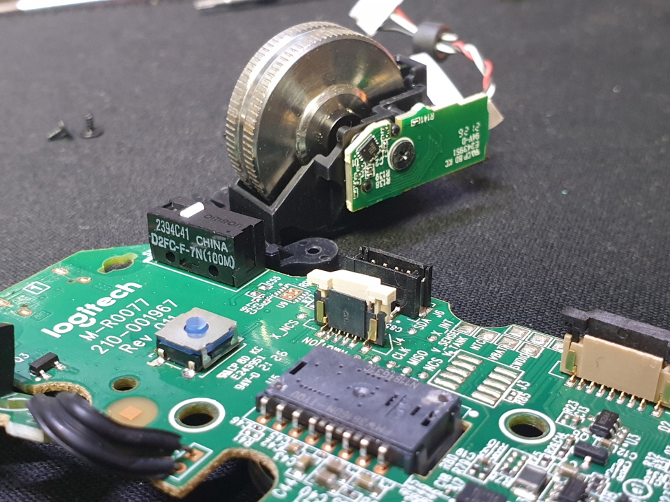 휠센서불량으로 휠센서교체수리 진행합니다. 휠센서불량은 휠팅김, 스크롤시 위아래로 잘 안움직이거나 아예 반응이 없는 경우 발생되는 현상이며 센서교체후 정상적인 사용이 가능합니다.