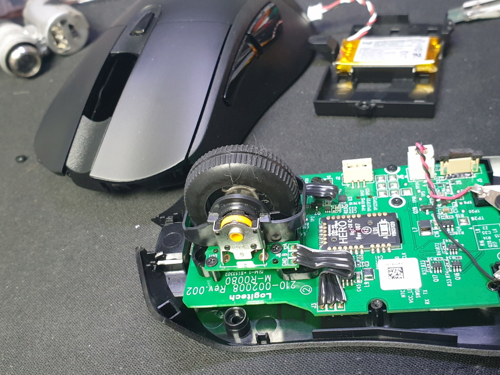 경기도 파주에서 마우스 휠 왔다갔다함으로 Logitech G703 MR0080 로지텍 무선 마우스 사설 수리 AS