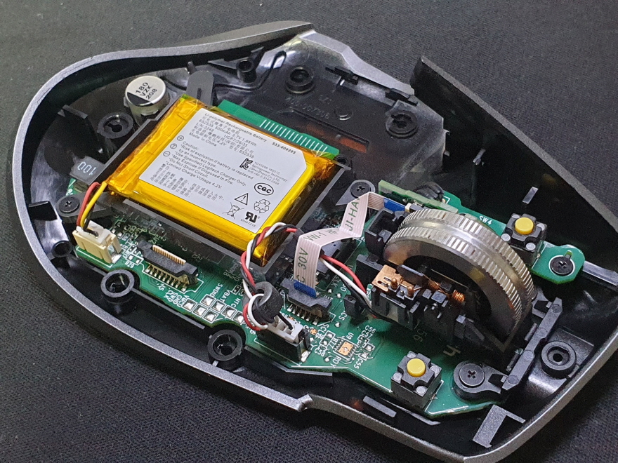 버튼내 스위치불량으로 새 스위치 카일 저소음 옐로우스위치 좌우교체 수리 진행합니다. 해당 모델은 일반스위치로 교체가 안됩니다. 반대로 MX Master 3(일반스위치) 에서 저소음스위치로 교체가 가능합니다.