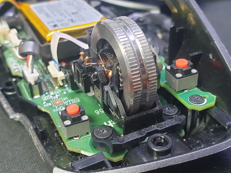 휠센서불량으로 휠센서교체수리 진행합니다. 휠센서불량은 휠팅김, 스크롤시 위아래로 잘 안움직이거나 아예 반응이 없는 경우 발생되는 현상이며 센서교체후 정상적인 사용이 가능합니다.