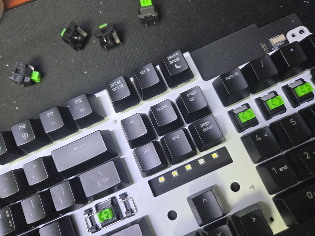 고객님께서 "Q와A는 확실히 문제를 확인했음 간헐적으로 눌리지 않는문제 길게 눌렀을때 입력이 해제되는 문제가 있음 어차피 수리하는 김에 많이 쓰는 키들도 함께 교체하고 해당키는 Q W E R A S D TAB CAP SHIFT(좌) SPACE BAR ENTER 키패드 7 8 9 "으로 수리요청해주셨습니다.