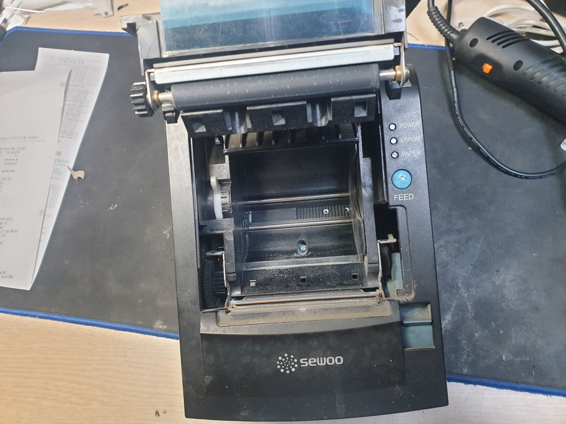 대구 달서구에서 계폐기불량 용지뚜껑닫힘불량으로 택배 입고된 Sewoo LK-T201 포스 셀프 주유소 세우테크 프린터 사설 수리 고장 AS