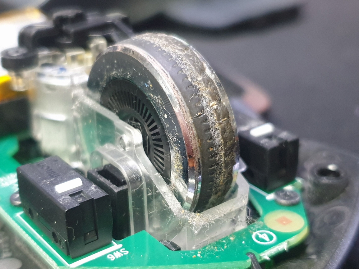 휠센서불량으로 휠센서교체수리 진행합니다. 휠센서불량은 휠팅김, 스크롤시 위아래로 잘 안움직이거나 아예 반응이 없는 경우 발생되는 현상이며 센서교체후 정상적인 사용이 가능합니다.