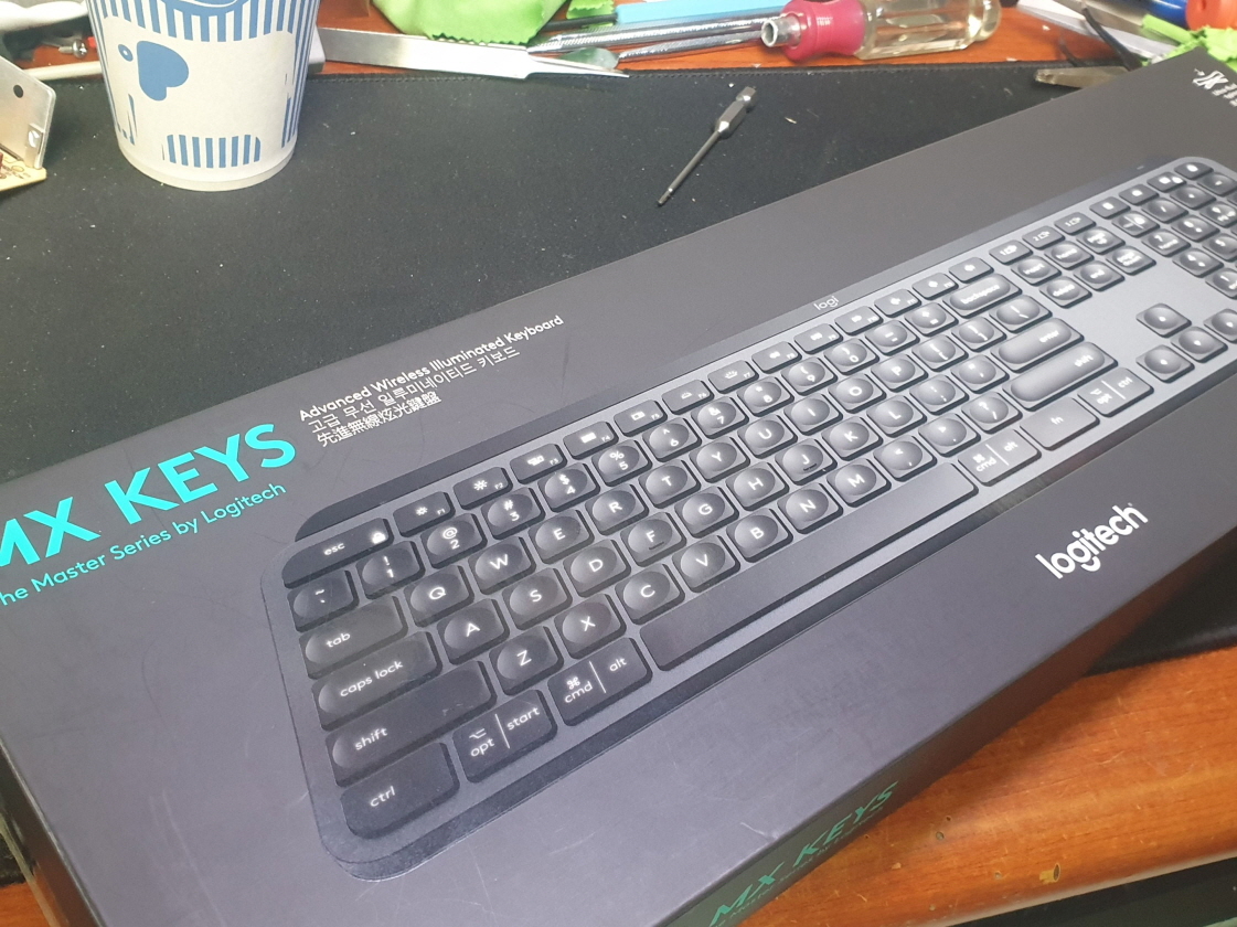 서울 동작구에서 버튼이 고정이 되지않고 덜렁거림으로 택배입고된 Logitech MX KEYS 로지텍 무선키보드 펜타그래프 병행수입 직구 사설 수리 고장 AS