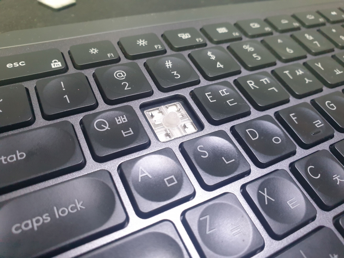 고객님께서 " 몇일전부터 워드 칠때마다 '딱, 딱' 걸리는 소리가 나서 먼지가 있나 해서 자판 빼서 닦으려 W 버튼을 뺏는데 힌지 하단 플라스틱이 부러졌는지 버튼이 고정이 되지않고 덜렁거림" 으로 수리요청해주셨습니다.