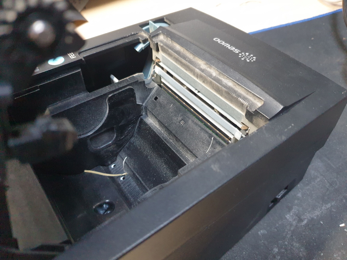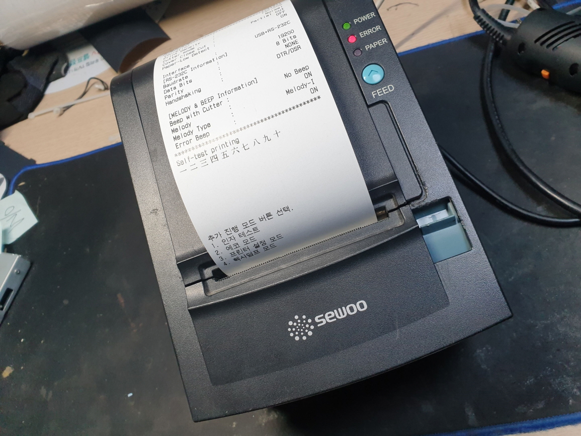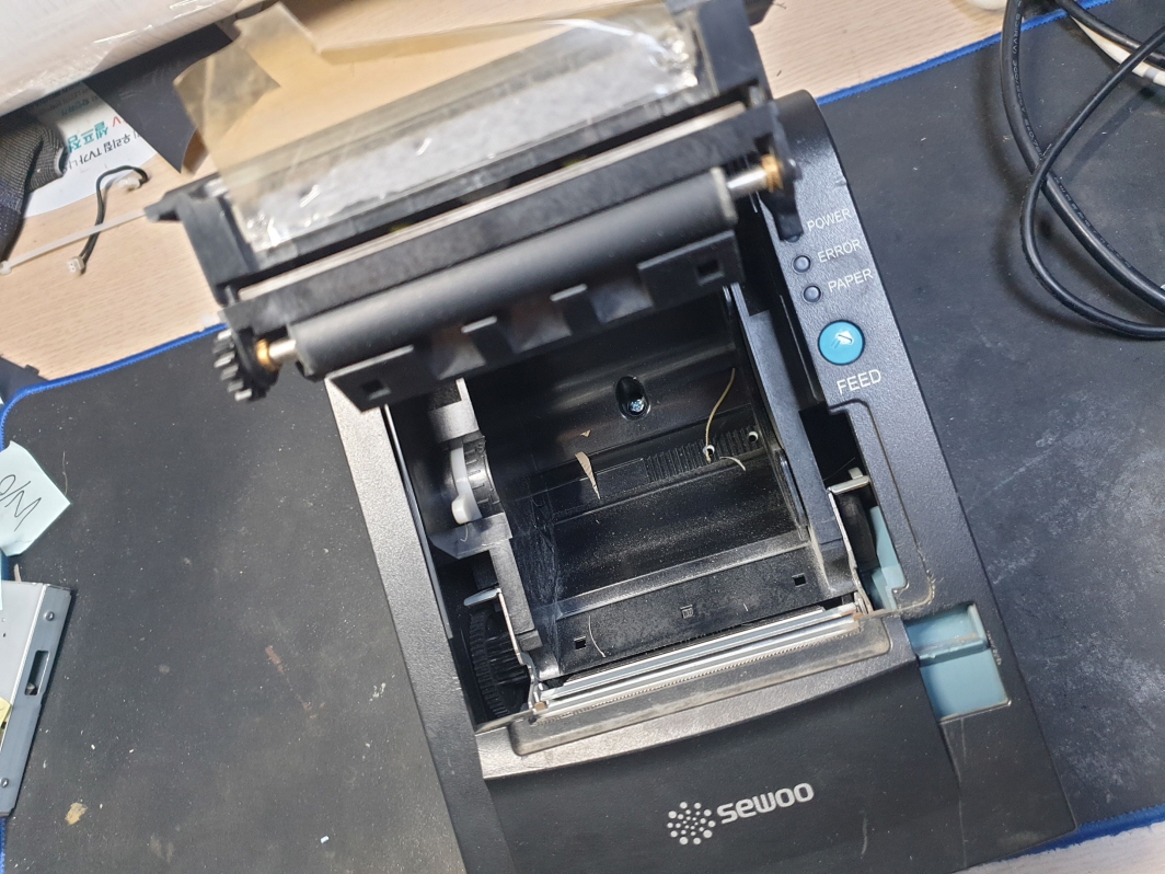 간헐적으로 에러불뜨며 인쇄가 안되거나 영수증 인쇄후 영수증 컷팅이 잘 안되는 문제로 수리 진행합니다.